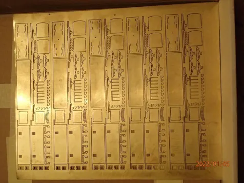 Eine Platine enthält Teile für 6 Wagen und kostete mich 40 EUR zuzüglich Versandkosten. Da ich mit meinem Ansinnen im Verein auf Zuspruch stieß, bestellte ich für uns 4 Platinen, was die Versandkosten erträglicher macht.