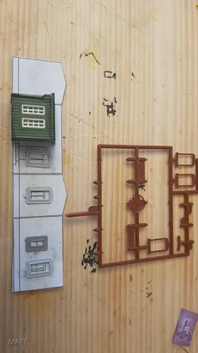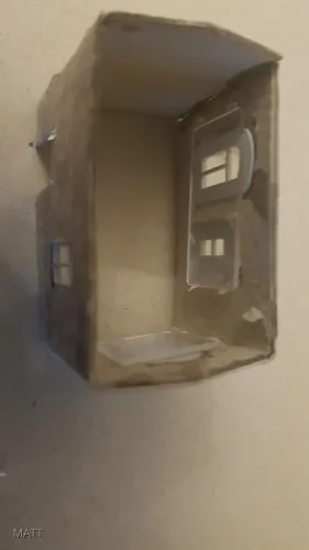 Ich hab in diesem Fall die Mauerpappe von Busch verwendet welche auf die Vorlage geklebt wird ( Fenster Löcher nicht vergessen )