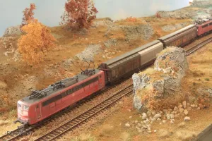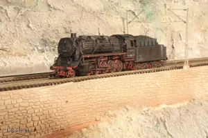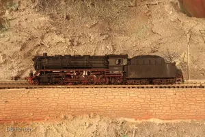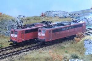Weitere Beispiele sind in Form einer BR44 - Fahrwerk, einer BR151 und BR140 in Orientrot und eine BR101 mit angehangen, alle mit dieser Technik ausgebleicht.