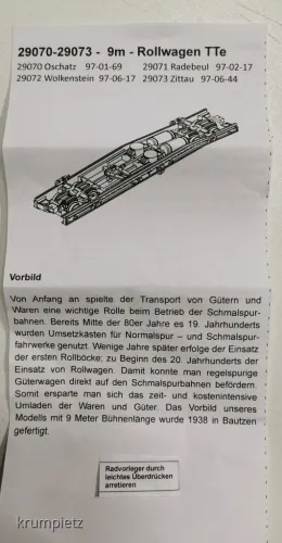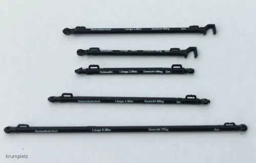 Ja gibt es... Die Radvorleger sind auf den Stangen beweglich hin und her zu schieben damit sie auf den Achsstand des entsprechenden Wagens der transportiert werden soll einstellbar sind und dann durch leichtes überdrücken werden sie arretiert. Dieser kleine Zettel lag zur Erklärung dabei....