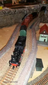• Nun dreht die Lok gerade ihre Einfahrrunden . :shock: