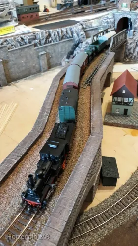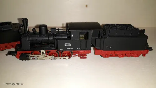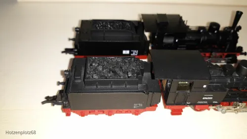 Gut sieht die Kleine ja aus . Über den Tender ob zu hochbeinig , die Fahrwerksblenden zu weit außen und nur flach graviert , o.ä. will ich mich hier nicht äußern . Auch andere Dinge , welche fehlen , wie z.B . die Dachstützen vom Führerhaus ö.ä. lasse ich mal außen vor .