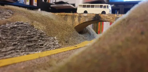 Also über die Brücke würde ich mit einem Bus nicht mehr fahren wollen... Schön gealtert aber für meine Begriffe etwa zu viel. Wenn du allerdings noch Geschwindigkeitsbegrenzungsschilder auf stellst passt es wieder.. z. B. 20 km/ h wegen Brückenschäden... ![]()
