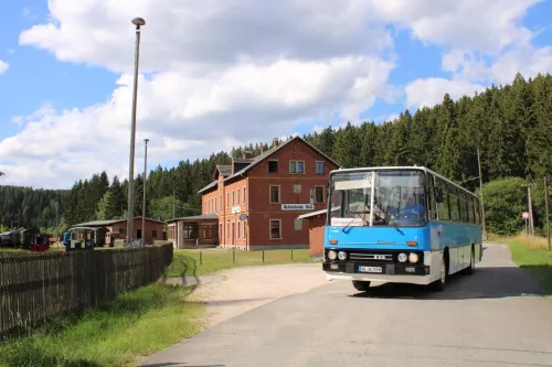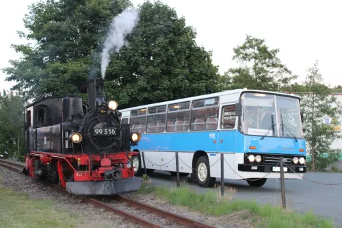 Gestern waren wir mit dem Ikarus Bus zum Bahnsteigfest der Museumsbahn Schönheide. Auch einen Abstecher nach Schönheide Süd haben wir gemacht.