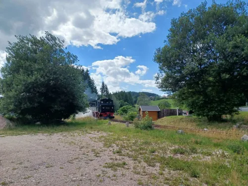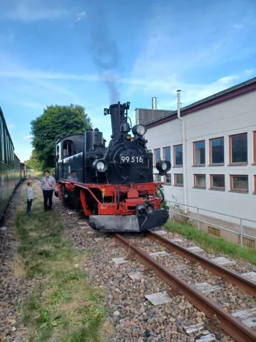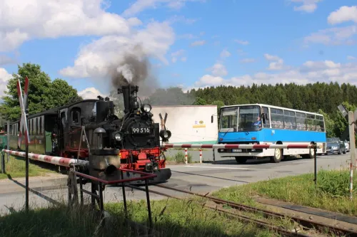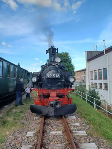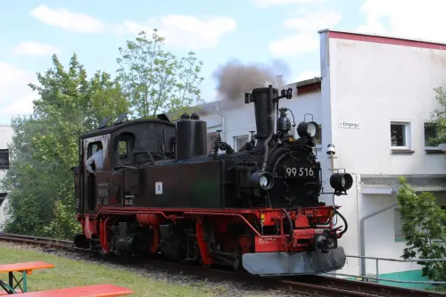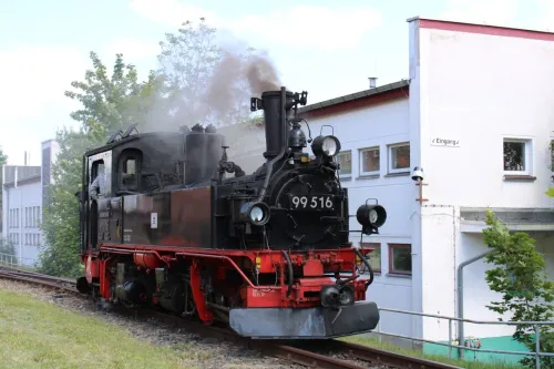 Tagsüber fährt zunächst die Dampflok 99 516 mit ihrem Museumszug fünf Mal zwischen Schönheide und Stützengrün.