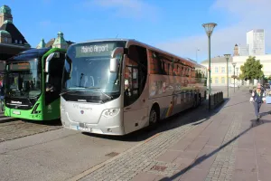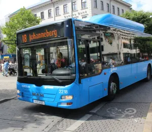 Zunächst ein paar Busse, die ich in Göteborg gesichtet habe. Im Linienverkehr waren ein MAN A23 Lion's City G NG 313 CNG von 2013, ein Volvo 7900A Hybrid von 2016, ein Volvo 7900 Electric von 2019, ein Volvo 8900 LE Dreiachser von 2019, ein Volvo 7900 EA von 2020, ein Volvo 8900 LE Zweiachser von 2020 und ein MAN Lion's City G NG 313 unbestimmten Baujahres unterwegs. Außerdem begegnete mir noch der Ocean Bus, der nach einer Quelle auf dem Chassis des Volvo FL, nach einer anderen Quelle auf einem Volvo-Bus-Chassis aufgebaut ist und der auch auf dem Wasser fahren kann, weshalb er für Stadtrundfahrten an Land und auf dem Göta älv genutzt wird. Ein klassischer Stadtrundfahrtenbus ist der Ayats Bravo II City von 2019.