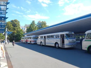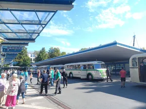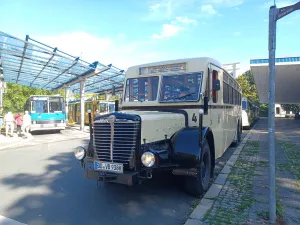 Vom Busbahnhof in Chemnitz, wo es eine Fahrzeugschau gab, setzte sich der Buskorso zum Straßenbahnmuseum in Kappel in Bewegung.