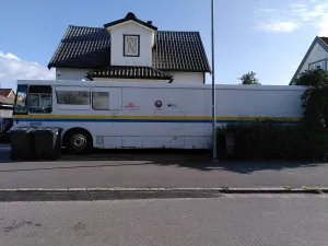 In Mölndal stand auf einem Privatgrundstück ein Wohnmobil, das auf einem 1972er Volvo B58-60F aufgebaut war, der für Postens Diligenstrafik fuhr (wörtlich: Postkutschenverkehr), der mit Fahrzeugen, die eine Mischung aus Bus und LKW darstellten, unterwegs war und Post, sonstige Güter und Personen beförderte:
