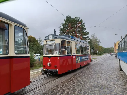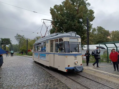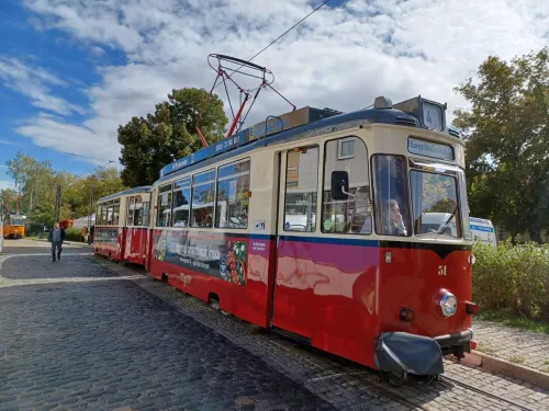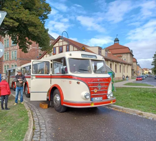 Der hallesche H6B mit Anhänger ist auch anwesend und bietet Rundfahrten an.