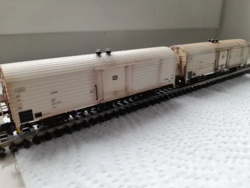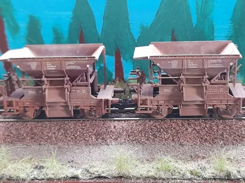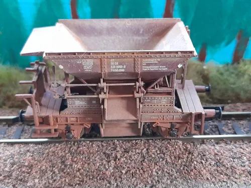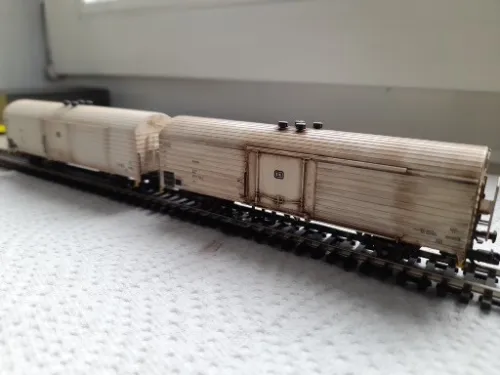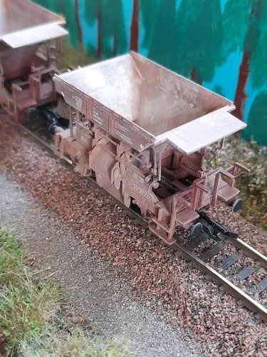hier nun mein Jahresabschlussprojekt:hä:. Ich hab mir mal 2 (von insgesamt 3) Talbot Schotterwagen vorgenommen und ihnen ein wenig Betriebsverschmutzung verpasst:48:. Wobei die Trennung von Wagen und Ladungseinsatz die weitaus größere Herausforderung darstellte:wand:. Zum Einsatz kamen wie immer diverse Washes und Pigmente und für die Ölnachbildung Acrylfarbe. Zum Schluss wurde dann mit Mattlack fixiert. Nun noch ein paar:foto: und bis nächstes Jahr dann;):hand:...