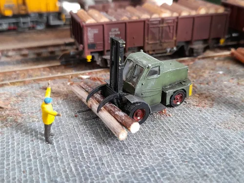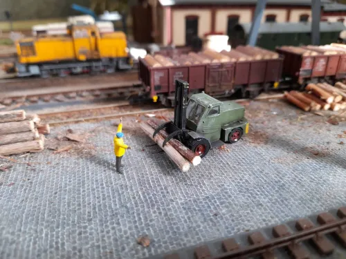kurz vor Saisonabschluss nochmal bissel gebastelt. Gabelstapler AP 4045, erhältlich bei 3D Druck Garage als Bausatz :thumbup: . Anbei ein paar :foto: vom Endergebnis und dem finalen Standort auf der Anlage.
