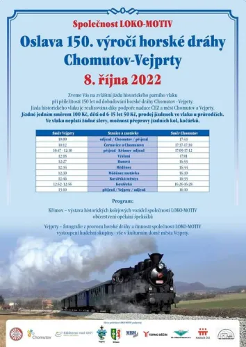 Am Samstag fand anlässlich des 150. Jahrestages der Eröffnung der Strecke Chomutov nach Vejprty eine Veranstaltung, organisiert durch Loko-Motiv Chomutov in Krimov, in Form einer Dampfzugfahrt von Chomutov nach Vejprty und wieder zurück statt.