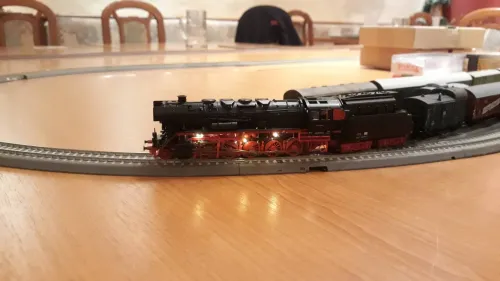 Zu späterer Stunde wurde noch ein Roco Stauber mit Triebwerksbeleuchtung und hustendem Lokpersonal gesichtet .