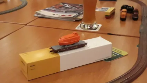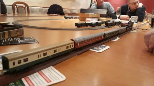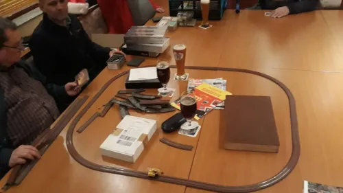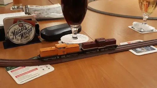 Weil mehr Stammtischteilnehmer als geplant da waren , wurden extra die Fährbootwagen von Arnold mit verschiedenen Biersorten angekuppelt .