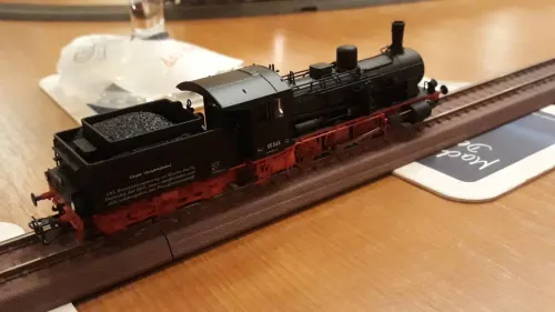 Gezogen wurde der Zug vom Tilligs Galeriemodell 01 504 . Lokführer Hurtig und Heizer Mohr hatten die Fuhre gut im Griff. War ja auch sehr übersichtlich und nicht schwer . :48: