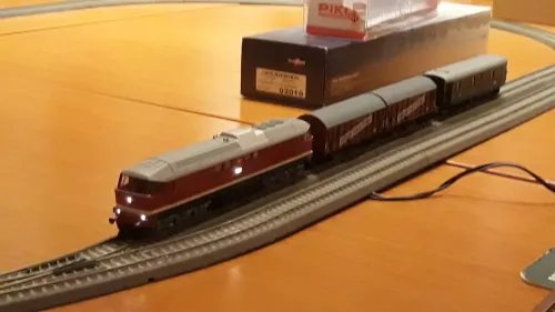 Der Zug hinter der Piko - Laminatka bestand aus dem berüchtigten Packwagen zur Getränkeversorgung .