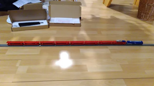 So, als Passivbahner habe ich dann die Wagen auf Bettungsgleis auf Laminat getestet: