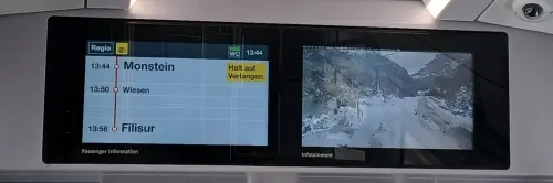 Von Klosters Platz über Davos Platz nach Fillisur konnten wir die atemberaubende Aussicht auf die Landschaft Graubündens genießen und auch das bekannte Wiesener Viadukt überfahren sowie das berühmte Landwasserviadukt kurz vor Fillisur sehen.