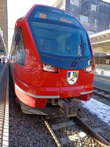Unsere Reise absolvierten wir in einem vierteiligen, modernen Capricorn Triebzug von Stadler Rail, die ABe 4/16 sind vierteilige elektrische Triebzüge, von denen die Rhätische Bahn (RhB) bei Stadler Rail insgesamt 56 Einheiten bestellt hat. Die RhB benennt die Züge nach dem Bündner Wappentier Steinbock als „Capricorn“.