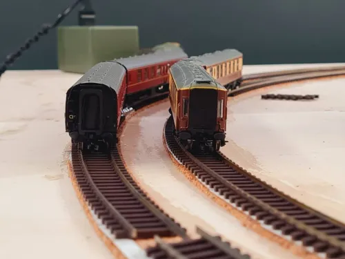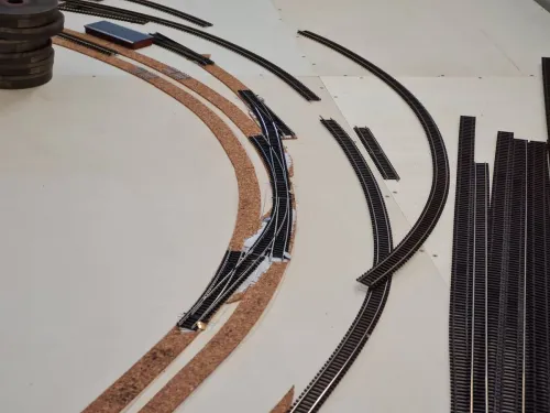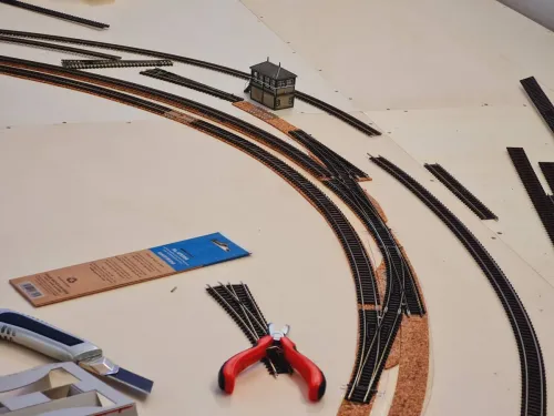 Ansonsten ging der Gleisbau weiter und die Kurvenüberhöhung passt (nicht zu viel und nicht zu wenig). Morgen mach ich die Ausschnitte für das Metcalfe Viadukt und die Landschaft.
