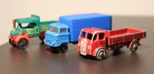 Dann ist mir aufgefallen, dass einige ältere Matchbox-LKW auch ziemlich genau TT sind. Ich hatte sie mir erst einmal zugelegt, würde gern mal ein kleines Diorama machen, wenn Hornby die Pannier, die in Textform mal vorangekündigt wurde, tatsächlich bringt. Dazu sollen die aber neue Farbe und verglaste Fenster kriegen.