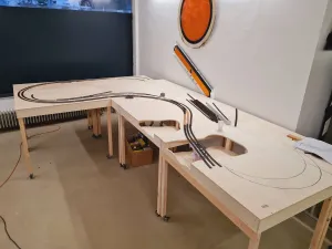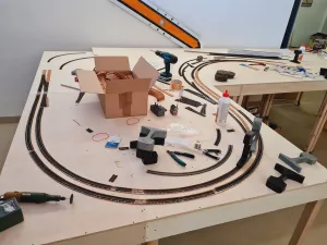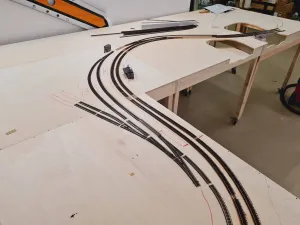 Ansonsten ging der Gleisbau weiter und die Kurvenüberhöhung passt (nicht zu viel und nicht zu wenig). Morgen mach ich die Ausschnitte für das Metcalfe Viadukt und die Landschaft.