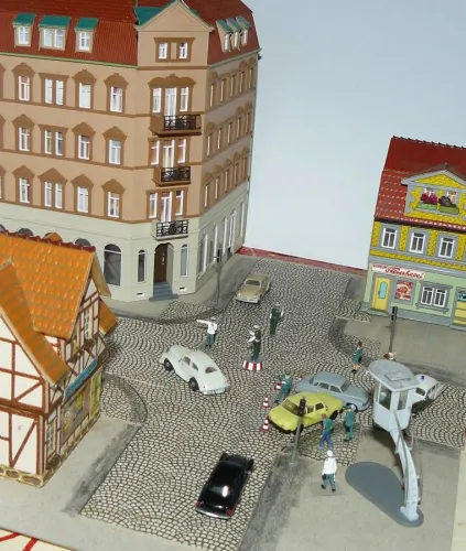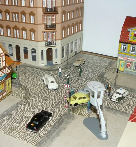 mit Eigenschöpfungen und den 3-D-Druck-Volkspolizisten bei der "Arbeit"