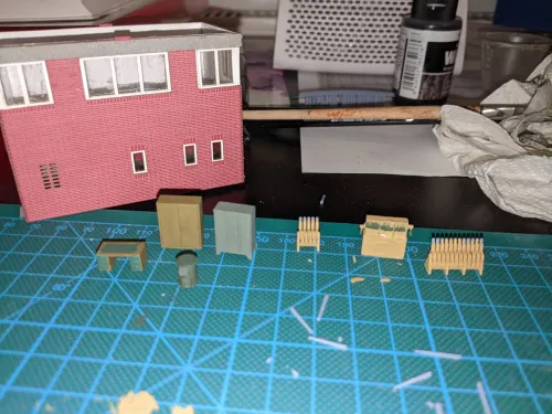 Heute Abend habe ich damit begonnen die Ausgestaltuns-Gegenstände für ein Stellwerk, zu bemalen.