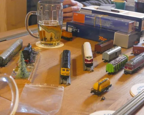 Dieser Stammtisch war wieder ein voller Erfolg. Die Bude war diesmal besonders voll! Es zeigt, dass das Interesse an der TT Modellbahn ungebrochen hoch ist. Leider war auch dieses Mal unser Haus- und Hof- Fotograf verhindert. Aber einige (wenige) Bildchen kann ich hier beisteuern: