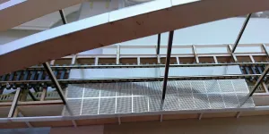 So langsam schloss sich die Geländedecke und am Bogen konnte der obere Windverband gebaut werden. Architekturkarton.
