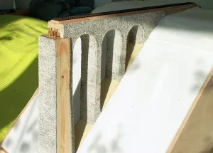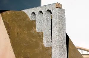 Nun war es an der Zeit, die beiden Brückenköpfe zu gestalten. Dazu hatte ich mir von CH-Kreativ Bruchsteinmauer-Gasten machen lassen.