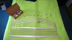 Nach längerer Suche fand ich dann einen Anbieter, der mehr wie einen Meter Länge lasern kann. Somit konnte der große Stabbogen aus 2 Millimeter Sperrholz in allen Teilen nach meinen Zeichnungen gelasert werden.