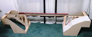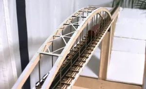 Länge über alles sind 220 cm. Der Bogen hat beim Original eine Stützweite zwischen den Wiederlagern von 120 m. Im Modell folglich genau einen Meter.