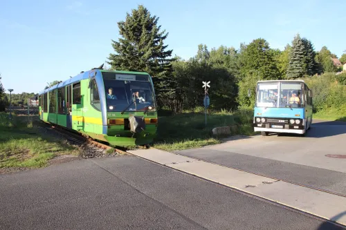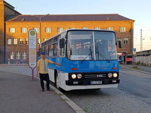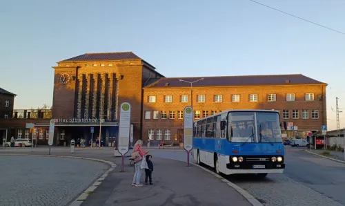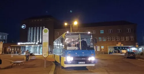 Gegen 21:00 Uhr waren wir wieder wohlbehalten in Zwickau und konnten den Ikarus zur "blauen Stunde" nochmal vor dem Bahnhofsgebäude ablichten.