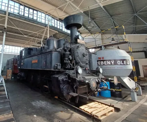 Hier im Depot erwarteten uns 50 Exponate durch alle Epochen der ČSD, ČMD-BMB, KkstB und ehemals privaten Bahnen in Böhmen.