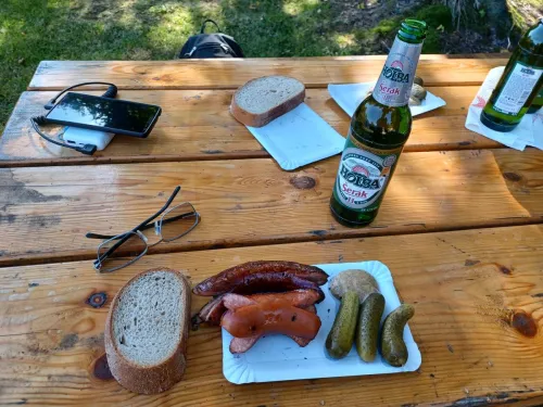 Die Mittagspause viel auch zünftig mit Speckacky, Klobása, Brot, Gewürzgurken und Bier aus und frisch gestärkt ging die Fahrt direkt bis ins Depot nach Chomutov.