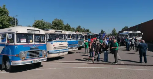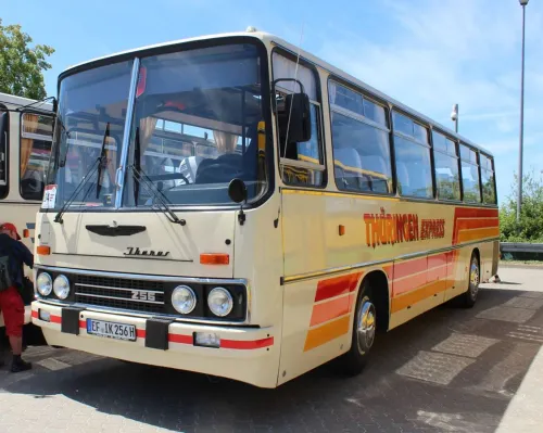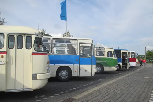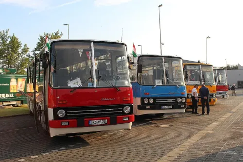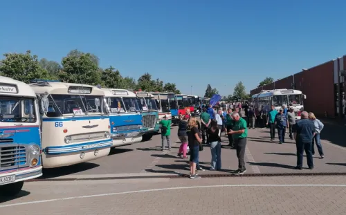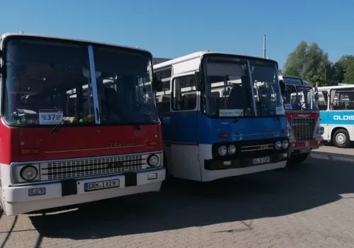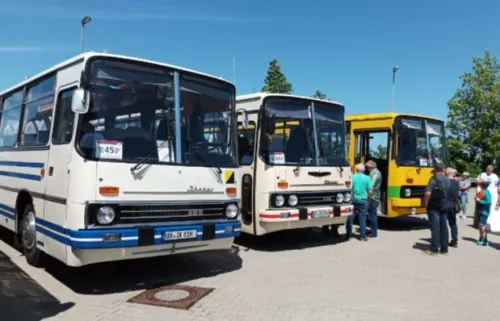 von der großen Rundfahrt mit allen Ikarus Bussen.