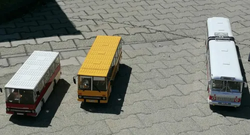In der Reihenfolge Ikarus 211, Ikarus 250.59 (2 Bilder, zwei verschiedene Fahrzeuge), Ikarus 250 Baujahr 1989, Ikarus 250SL Baujahr 1986, Ikarus 255 Baujahr 1982, Ikarus 250.71 Baujahr 1982 (3 Bilder; der Bus sollte regelmäßigen Foristen bekannt vorkommen...), Ikarus 255 Baujahr 1981, Ikarus 256 (2 Bilder, zwei verschiedene Fahrzeuge), Ikarus 256.44, Ikarus 260.02 Baujahr 1974, Ikarus 260.43 Baujahr 1988, Ikarus 260 Werkstattmobil, Ikarus 280.02 Baujahr 1990 (2 Bilder), Ikarus 280.03 Baujahr 1989: