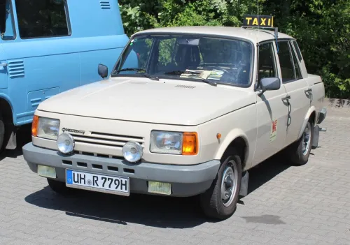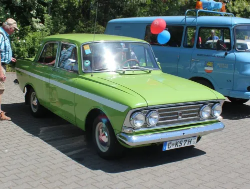 In der Reihenfolge Moskwitsch 2140, Moskwitsch 408, AWZ P70, Barkas B1000 Dispatcher, Barkas B1000 Pritsche, Opel Olympia Rekord P2 von 1963, Saporoshez SAS 968A, Skoda S100, Wartburg 1.3 Taxi, Wartburg 311 Coupé, Wartburg 353W Taxi, Wolga GAS 24 Taxi, kleine Gruppe (2x W353, 1x W124) auf Firmengelände: