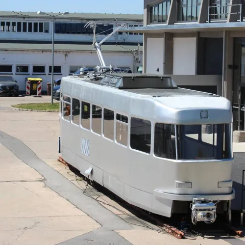 Gegenüber dem Betriebshof befindet sich die Eventlocation "Kraftverkehr, und auf deren Gelände steht eine silberne Tram, die laut Google mal die Tatra T3DM Nummer 523 der CVAG war: