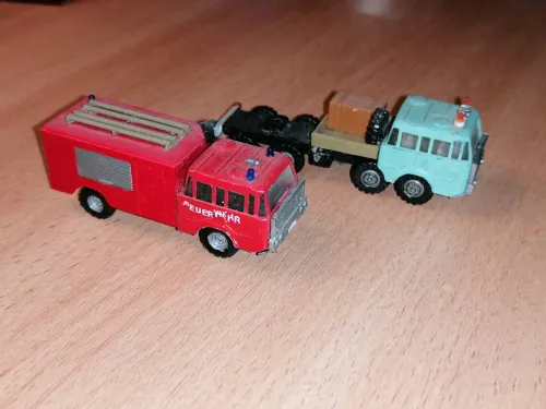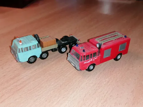 Bis auf die verrutschte Aufschrift an der Feuerwehr (da hat wohl der Zahn der Zeit dran geknabbert?) sehen die doch prima aus, zumal die Ausgangsmodelle ja auch keine Supermodelle waren.