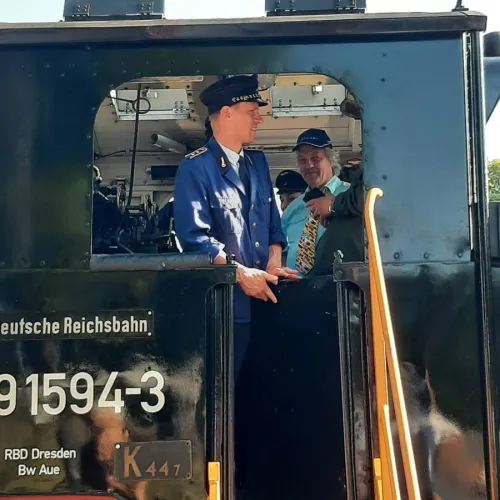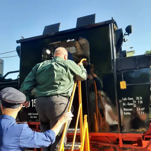 Die ehemalige IV-K ist bereits in Wilkau-Hasslau eingetroffen und mit ihr kann man auf einem kurzen Gleis Führerdtandsfahrten mitmachen.
