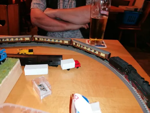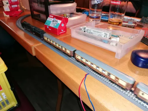 TrainSetter kommt diesmal nur mit meiner Person, die nächste Generation bleibt zu Hause. Auch bringe ich, weil beim letzten Stammtisch falsche Produkte mitgenommen wurden, ein paar Bausätze der TrainSetter-Minimodule mit.