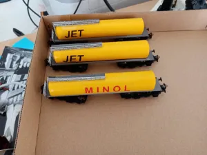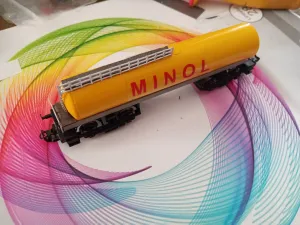 Aus 20 mm Kabelrohr mit 100 mm Länge mit zwei Holzplatinen an den beiden Enden und 15*15 mm Kabelkanal mit 120 mm Länge sowie Y-30 Drehgestellen, Selbstklebefolie und Gitter von Modulor sowie Pappe lassen sich Kesselwagen für die Nenngröße TT bauen....