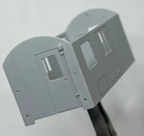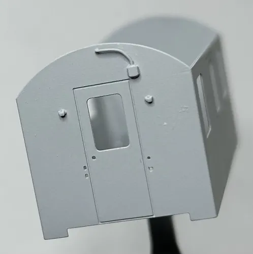 Die Türscharniere an den Seiten wurden durch Einkleben von 0,25 mm Draht in die 0,2 mm Fugen realisiert. Die Türgriffe sind auch von der Digitalzentrale, sie sind zwar nicht die passenden, aber sehen trotzdem schick aus.