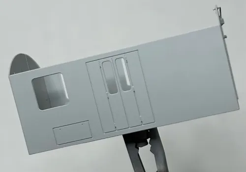 Dann wurde grundiert und lackiert und beschriftet. Das Ergebnis ist unten zu sehen, sowie ein paar Bilder nach der Grundierung. Da kann man am besten die zusätzlichen Anbauten sehen.