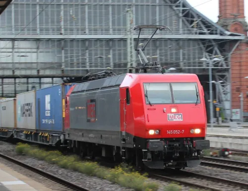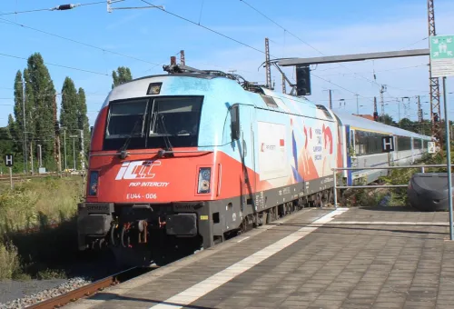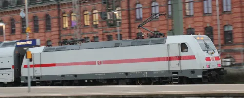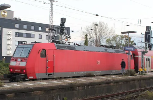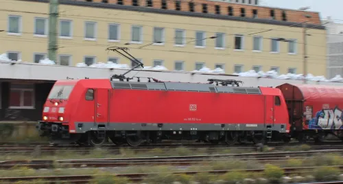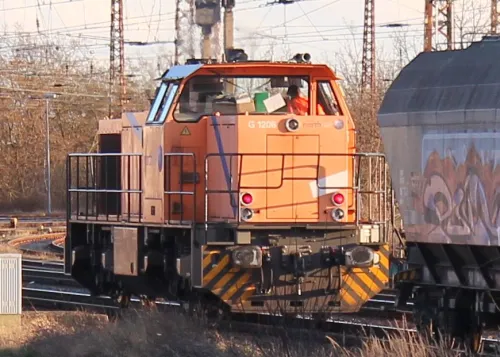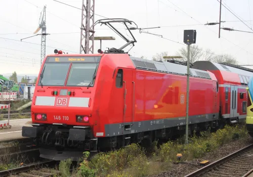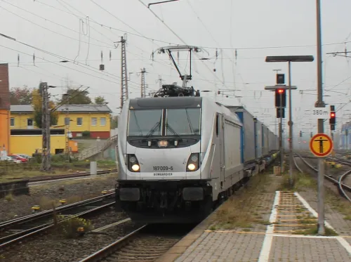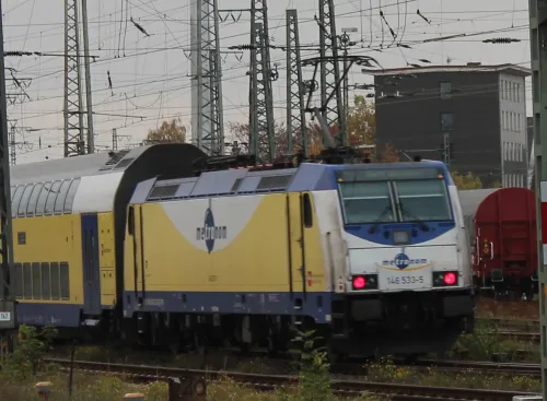 Am Sonnabend in Frankfurt (Oder), die 111 082-4 von RailAdventure, leider hinter einem Zug: