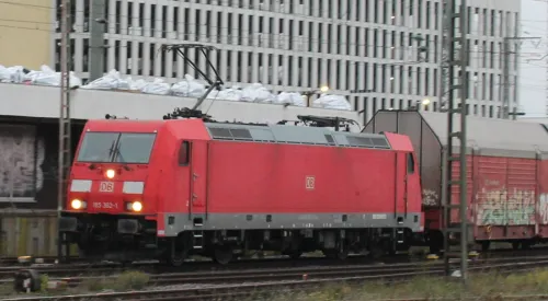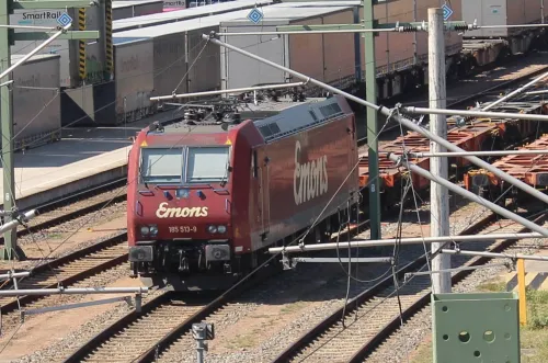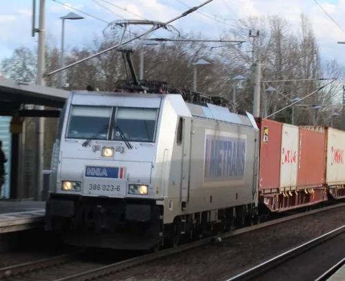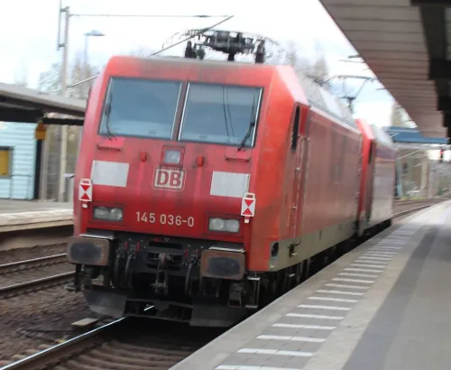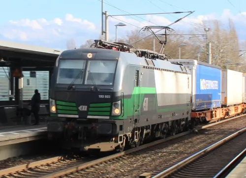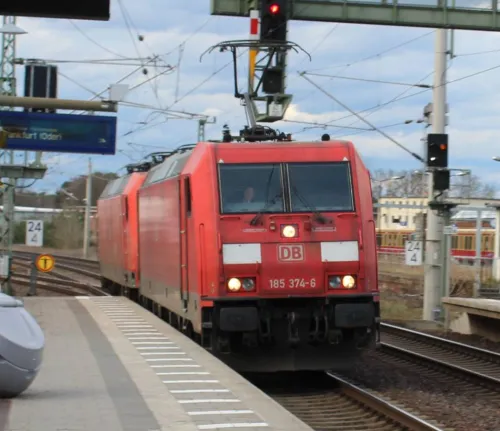 Am Sonntag in Erkner - ein DB-Lokzug aus 185 374-6 und 145 036-0, Vectron 193 933 der ELL und Metrans 386 023-6: