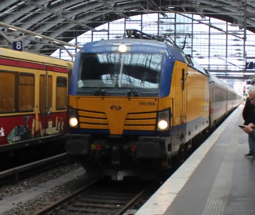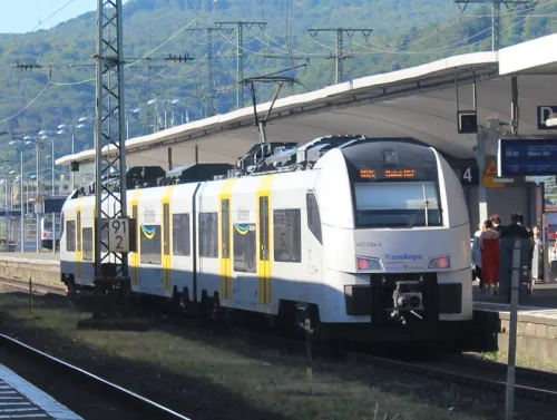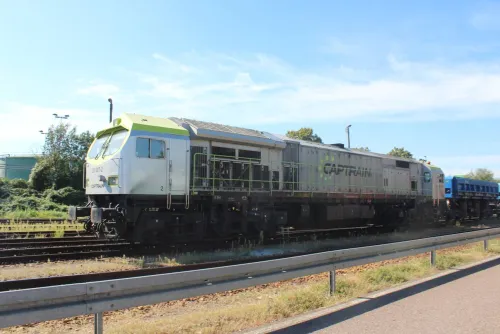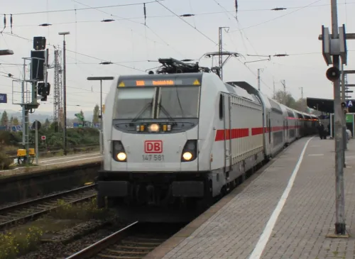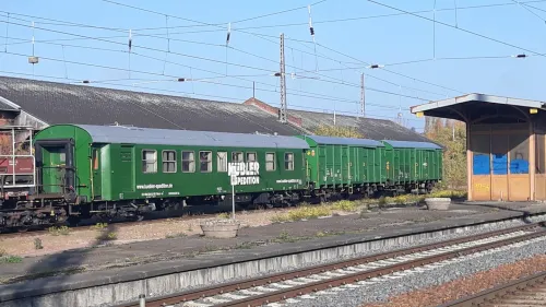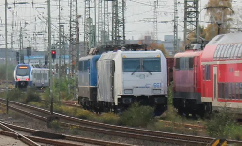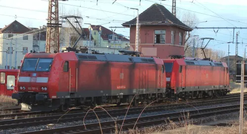 Am Sonntag in Frankfurt (Oder) - Akiem 185 581-6, DB 152 091-5, DB 185 157-5, DB 185 237-5, DB-Mietlok 143 856-3 für Delta Rail und Arcelor Mittal 248 043 mit einem Getreidezug (3 Bilder), die sich von einer Northrail-G1206 (2 Bilder) vermutlich über die Oderbrücke schieben ließ (Warum eigentlich, die hat doch auch einen Dieselmotor?) und dann ans südliche Ende des Zuges umsetzte, um ihn mit Bügel an der Oberleitung dann selbst zu befördern. Außerdem noch zwei Triebwagen, und zwar alle drei Teile eines DB-Regio-Siemens Mireo 463 106-5, 863 106-1 und 463 606-4 sowie ein Talent 1 der NEB, VT 643.10: