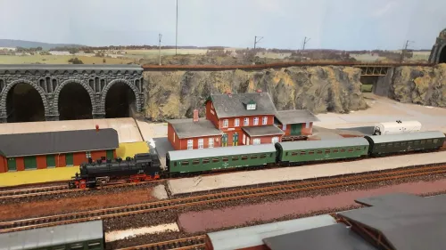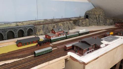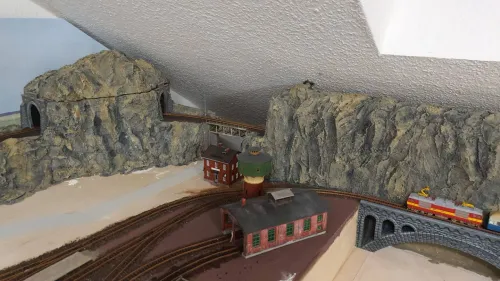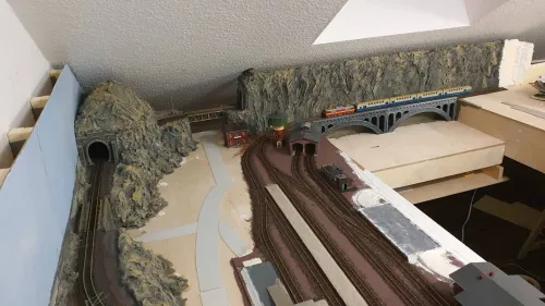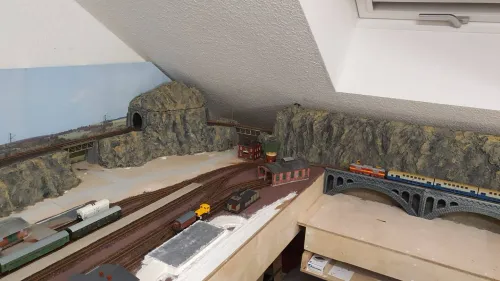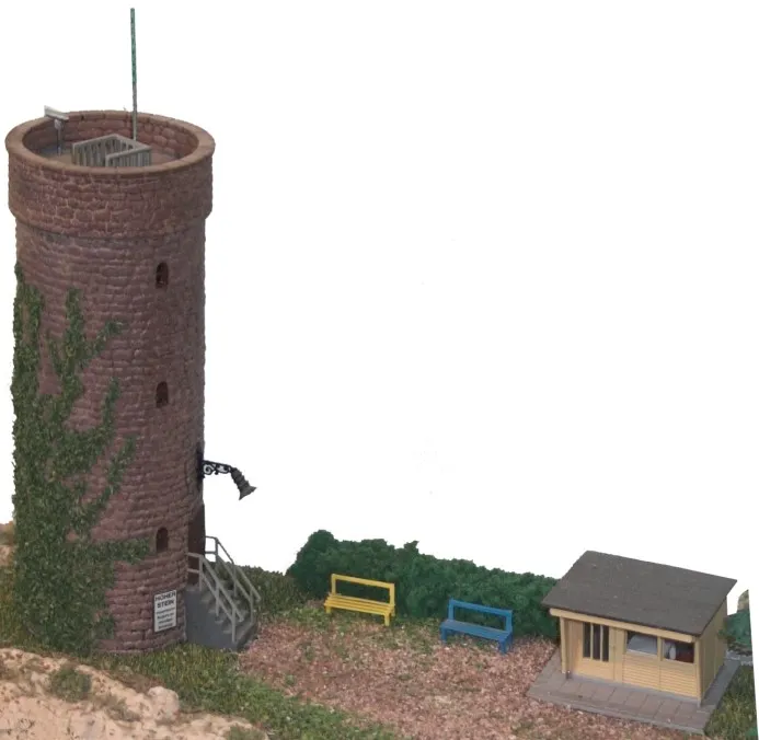 Der Turm ist komplett von mir erst lackiert und dann mit Bewuchs versehen worden (und der Verkaufsstand hat eine Inneneinrichtung und eine Landkarte an die Wand bekommen). Das ist allerdings schon 35 Jahre her. Der Turm hat auf der nicht sichtbaren Seite noch einen langen Zopf aus Echthaar aus dem oberen Fenster bekommen, zusammen mit einer herausschauenden "Prinzessin".